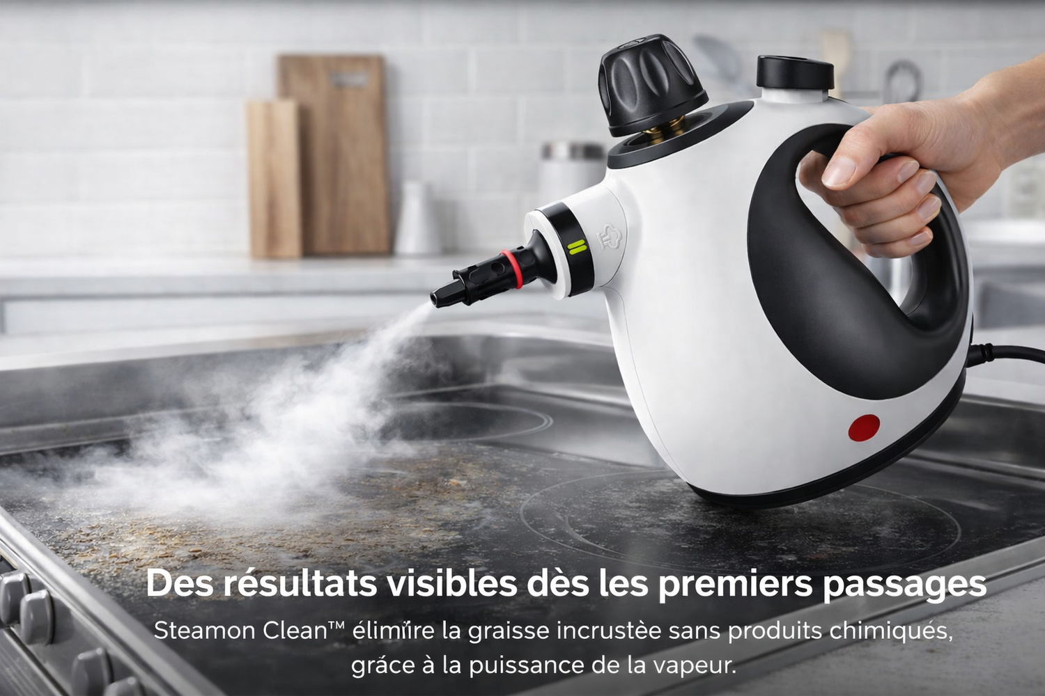 La vapeur fait tout le travail pour vous : elle décolle la graisse incrustée, élimine les bactéries et laisse vos surfaces impeccables… sans effort.